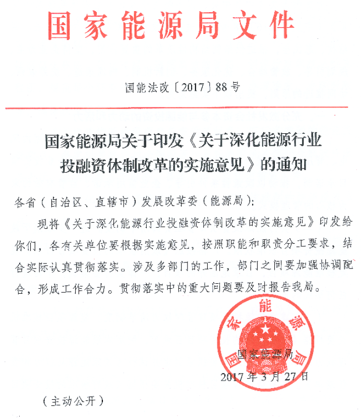 國家能源局關(guān)于深化能源行業(yè)投融資體制改革的實施意見